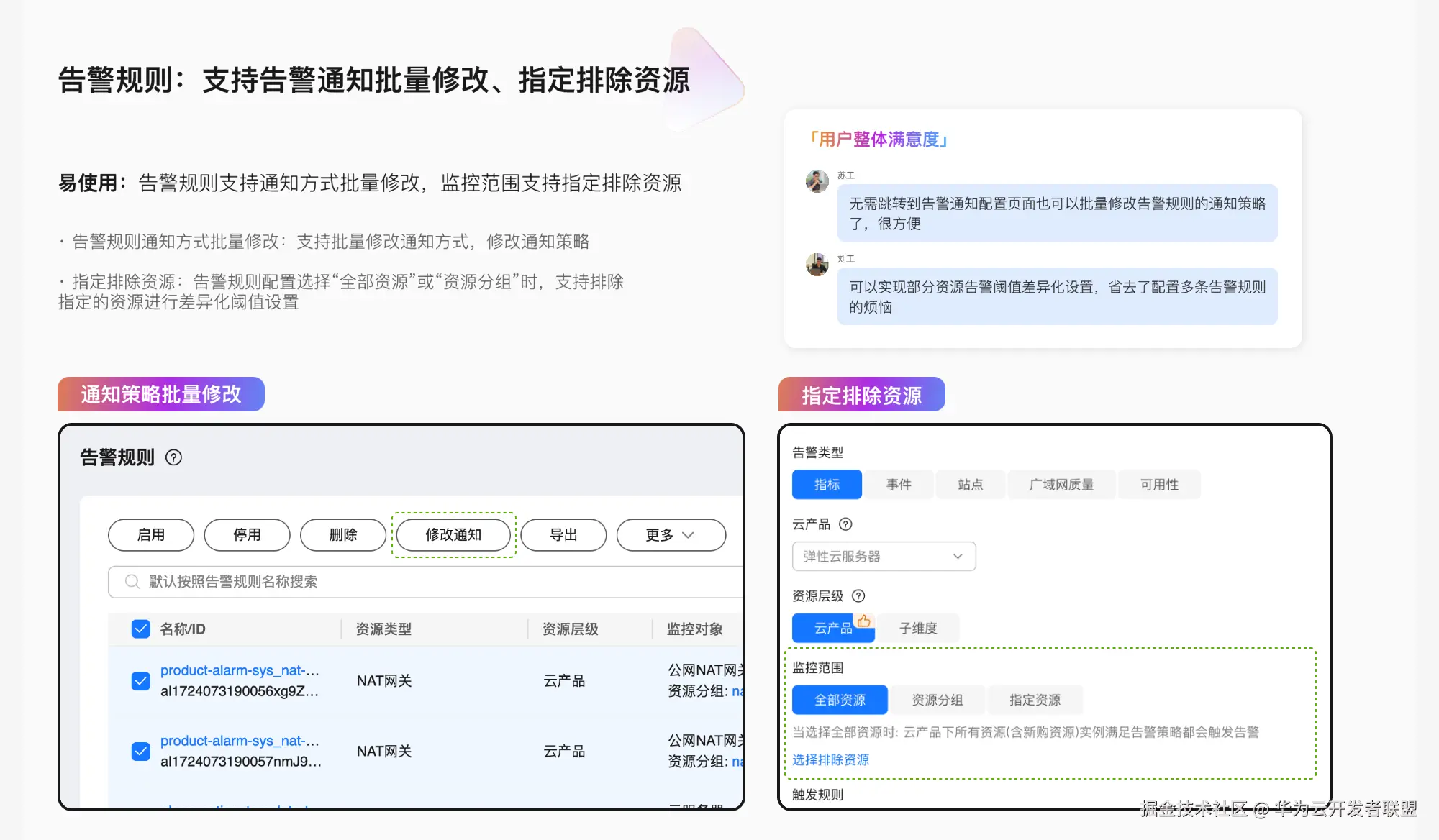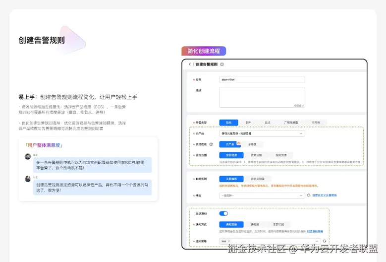 - 优化配置流程:新增 “云产品” 资源维度,集成告警通知配置模块,优化创建告警规则流程