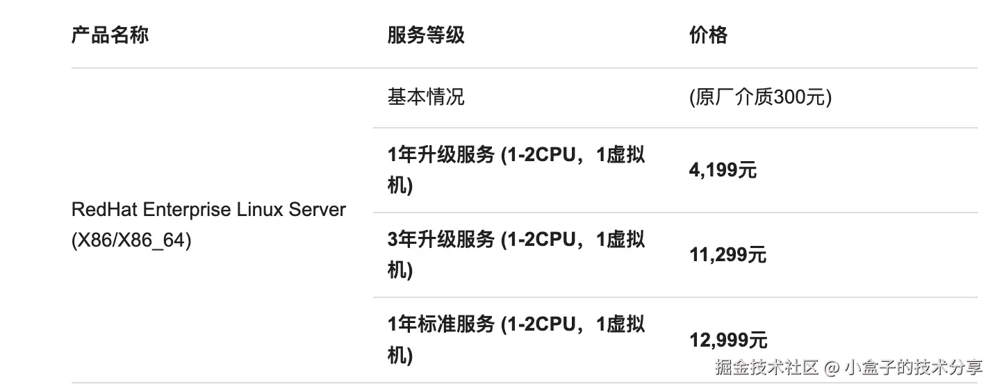 最初红帽公司开发了企业级付费的 linux 操作系统: Red Hat Enterprise Linux (RHEL)。CentOS 本身是 RHEL 的一个免费开源复制版。这对于广大开发者和系统使用者可是件大好事,因为有企业级付费产品冲在前线做质量保障,CentOS 直接跟在屁股后面复制成果做免费开源,当时的 Red Hat 简直是IT界的赛博菩萨。CentOS 也成为了很多公司服务器操作系统的不二之选 。