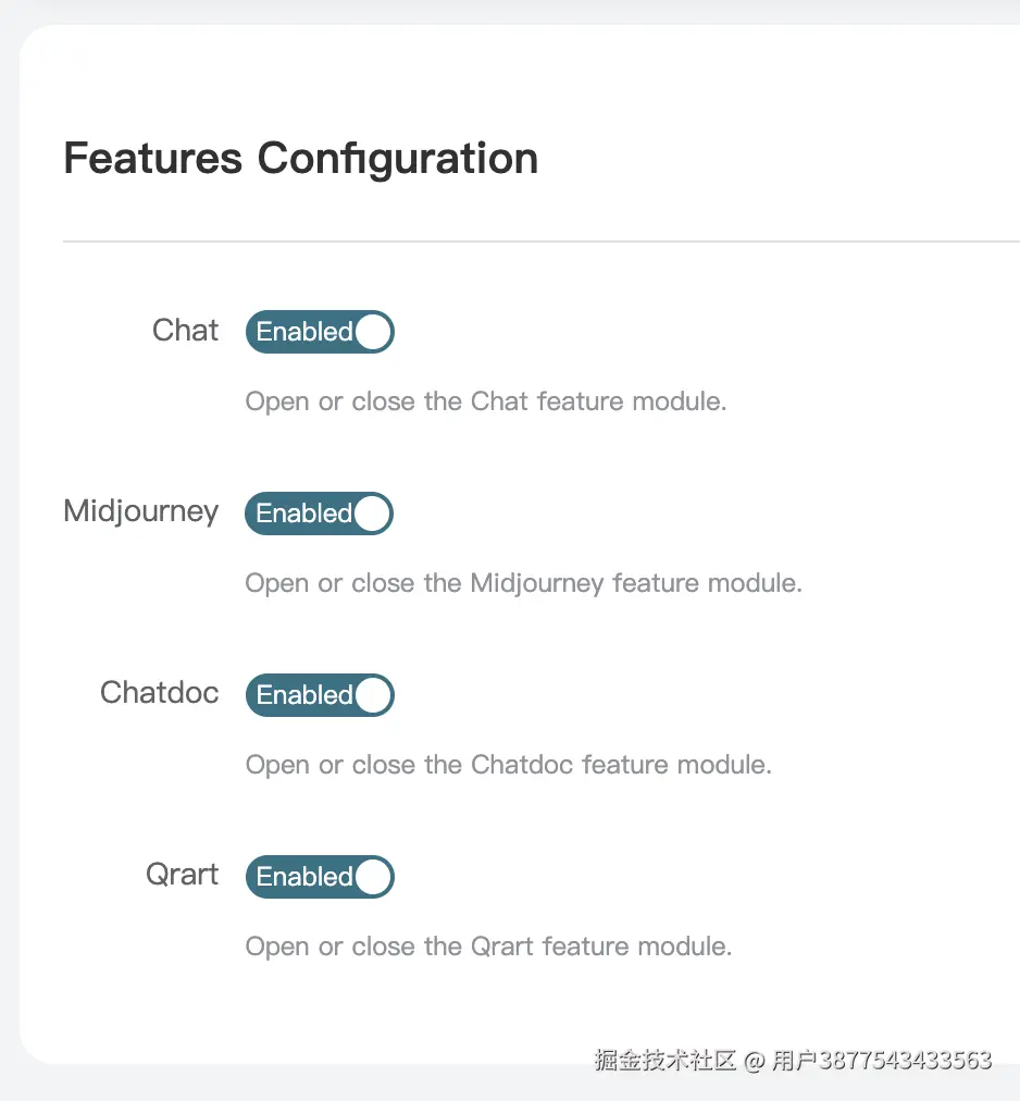 另外还有一个配置选项就是功能开关,如图所示: