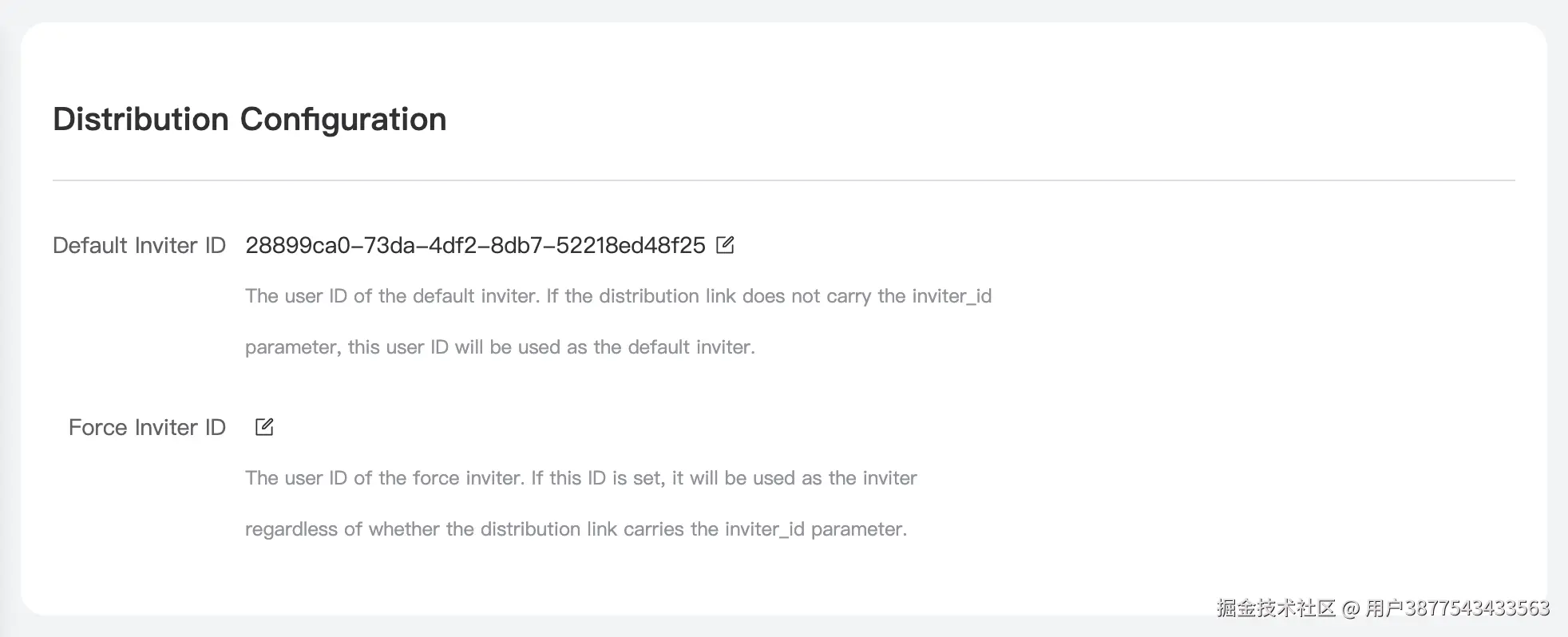 这里我们可以修改两个信息,一个叫默认邀请人 ID、一个叫强制邀请人 ID,说明如下: