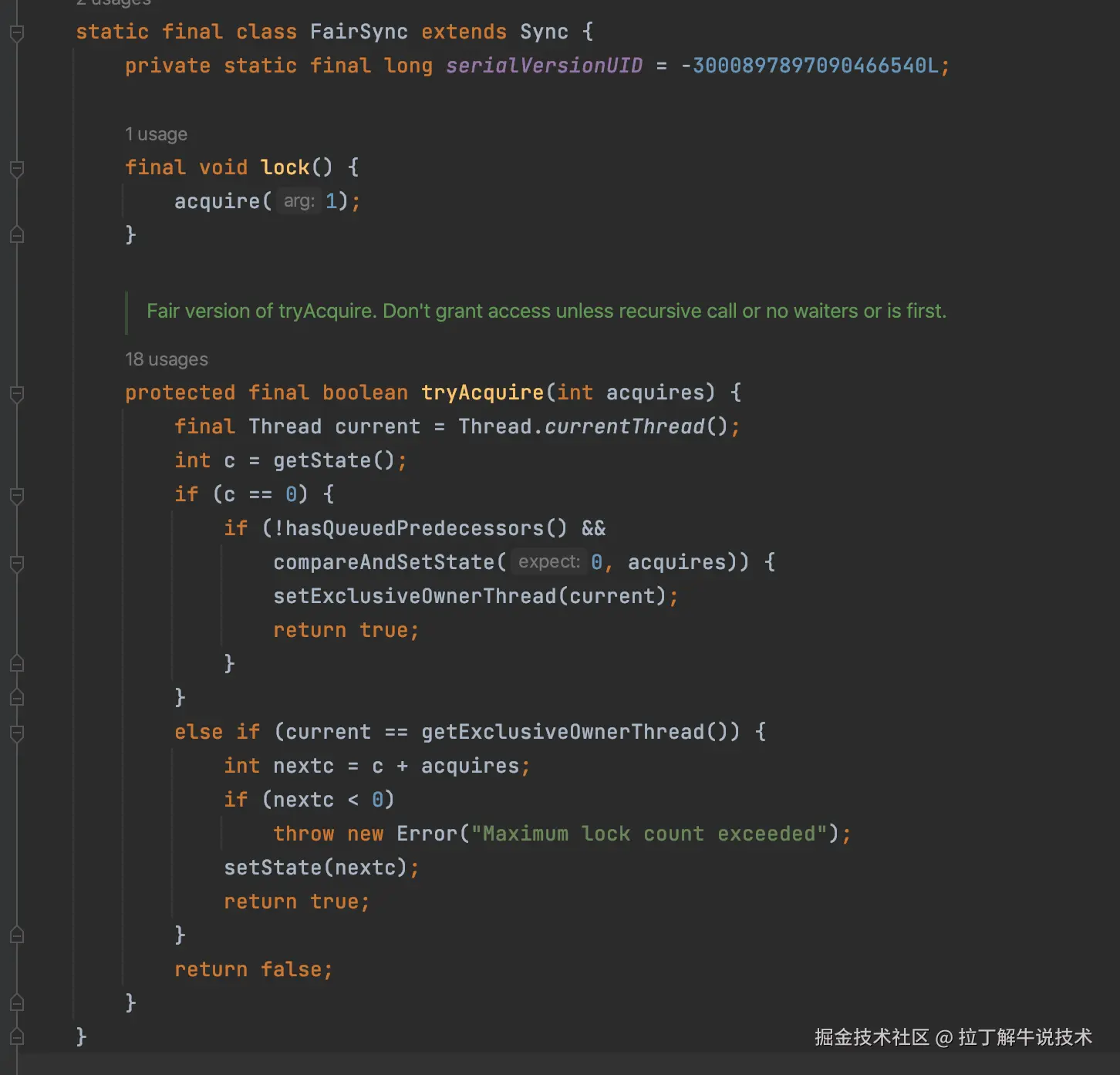 2.1 公平锁是怎么实现的?