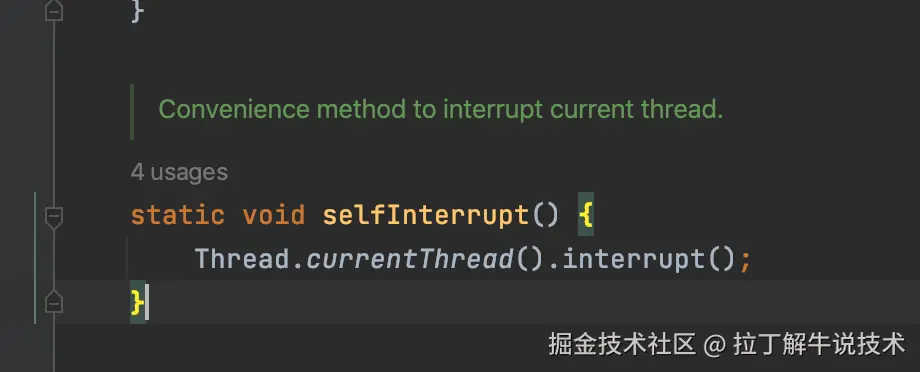 **第三步:**第二步执行后,也会调用selfInterrupt(),里面的源码就是线程自我中断,修改中断标识位为:true。