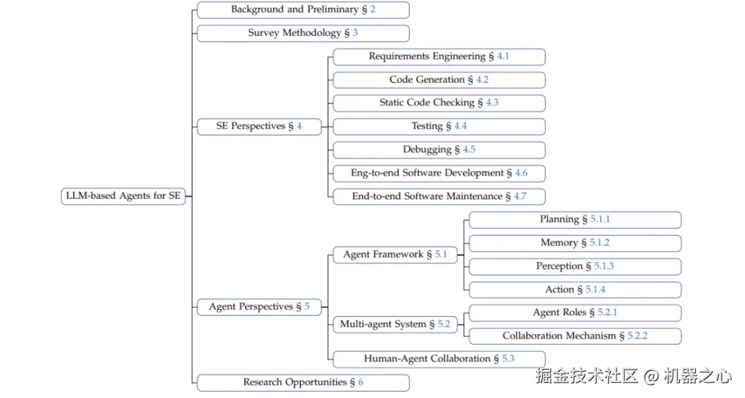 该综述进一步探讨了面向软件开发和维护的 Agent 的未来研究方向。
