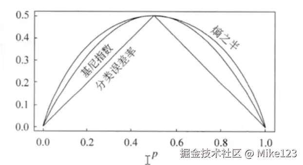 CART 算法使用基尼指数。它表示如果根据数据集中类的分布随机标记随机选择的样本,则随机选择的样本被错误分类的概率。基尼指数的公式为: