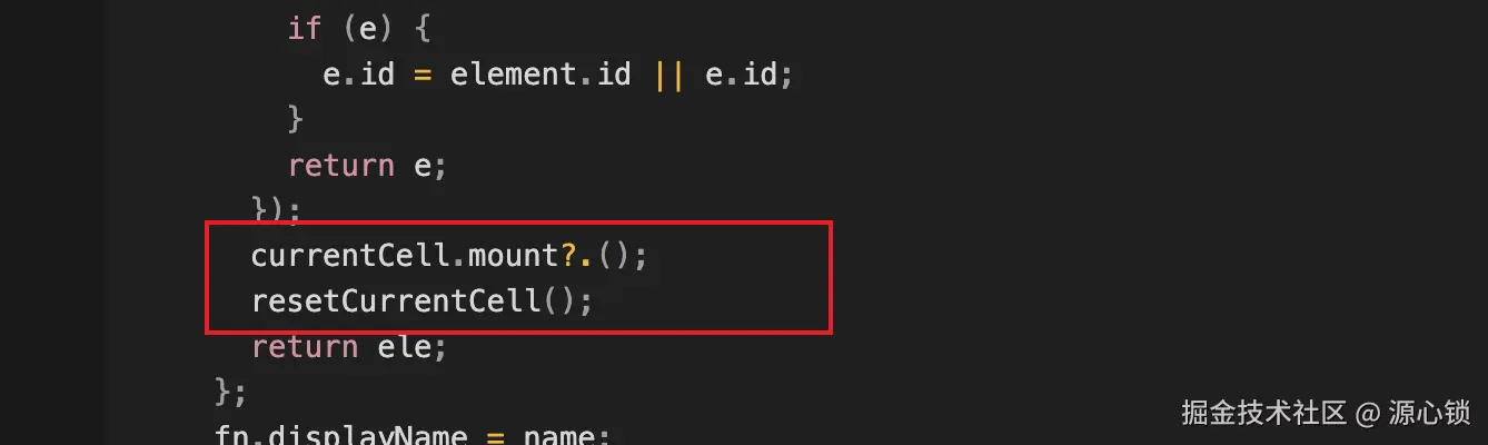 只看这两句代码的话,可以理解它们的作用:在每次执行渲染函数的时候,在每次渲染完之后,先触发 mount,再 reset 当前 cel。