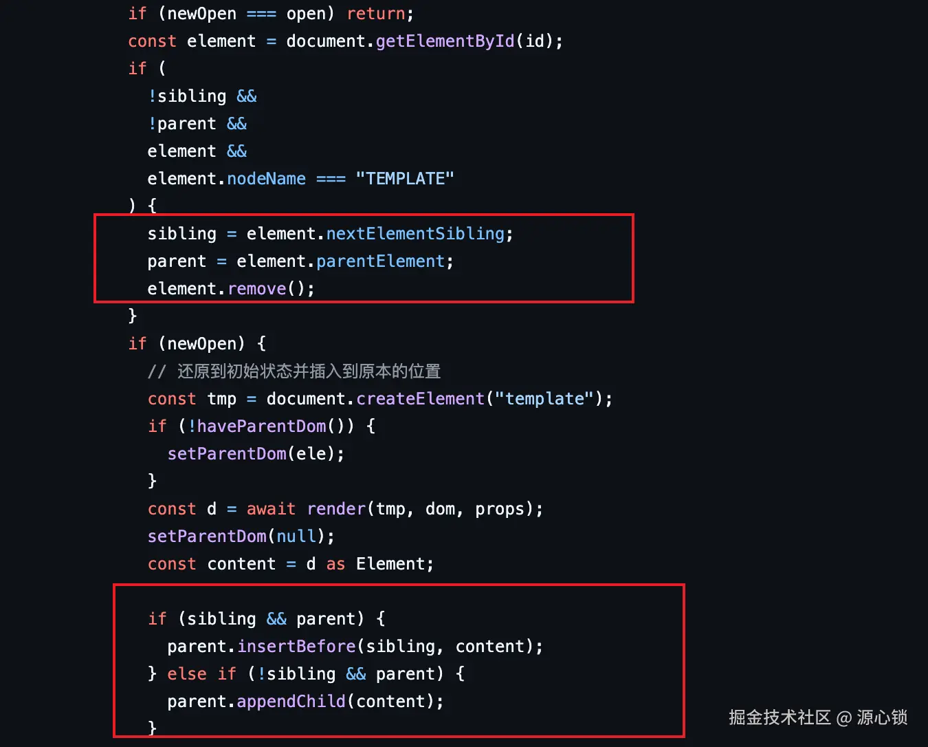 而另一部分则是定位相关的,即条件渲染时如果移除了 dom,再次出现时怎么还原到用户视角的位置,对应下边的源码: