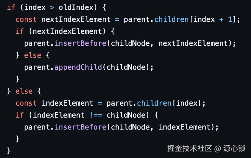 我们主要看看移动的逻辑,即前后两个 dom 节点的数据没有发生实际变化,实际上只是移动到新索引位置上的行为。