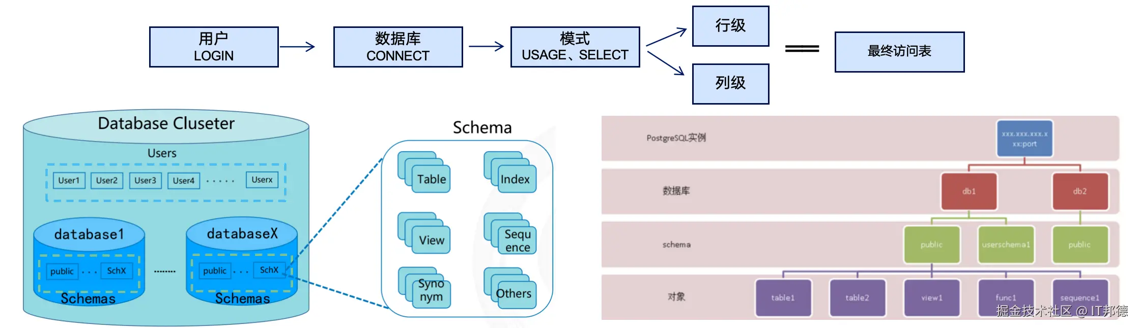 2.schema可以将数据库对象组织成易于管理的逻辑组,用户根据其对schema的权限,可以访问所连接数据库的schema中的对象