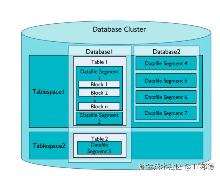 3.表空间是一个目录,仅是起到了物理隔离的作用,可以跨数据库,其管理功能依赖于文件系统。