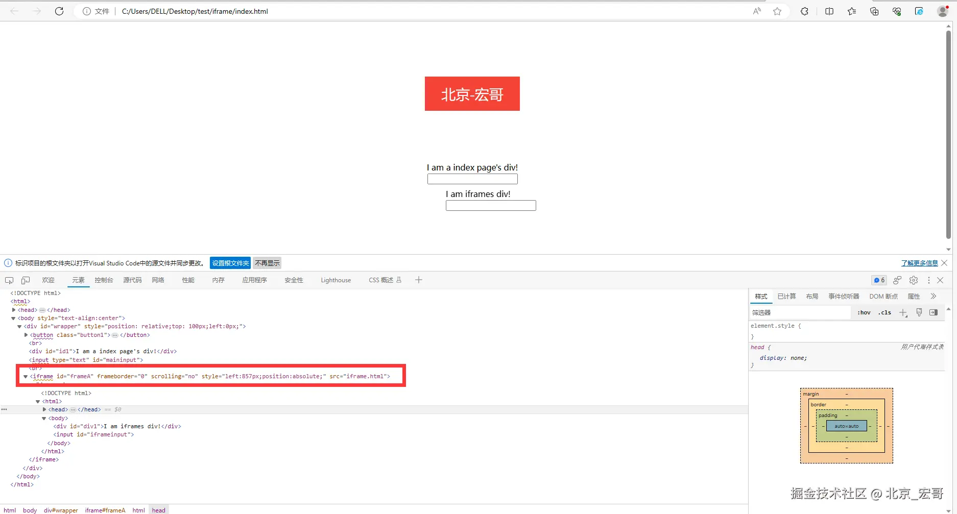 a.宏哥这里还用之前的html页面,进行演示。如下图所示: