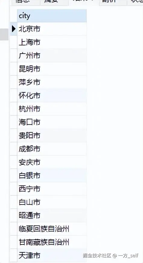 可以发现有很多重复的城市数据,执行该SQL最终的结果为: