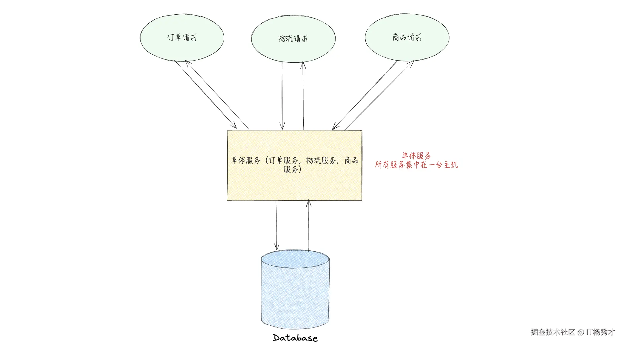 比如说有一家饭店,刚开业的时候,由于客户量不大,所以只聘请了一位厨师,这位厨师承包了所有的工作,既负责配菜,又负责炒菜,还负责上菜,由于客户不多,完全能够应付,这种场景就相当于是最开始的单体架构