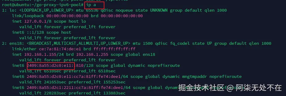 可以看到啊。我们去请求的话,是从我们的ipv6生成返回过来的随机ipv6地址