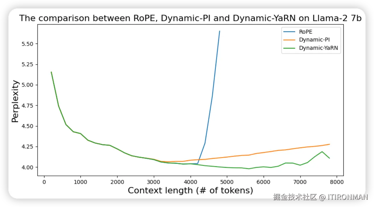 采用“长度缩放”技巧,通过简单地按相同量缩放复数 RoPE 嵌入,将 和 都按常数因子 缩放。这样,YaRN 就可以在不修改代码的情况下有效地改变注意力机制,改变注意力的目标是降低模型的困惑度,即模型理解能力。