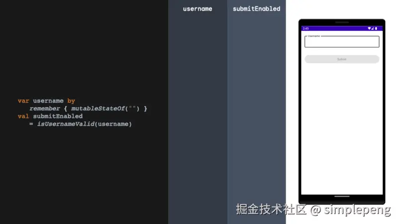 另一方面, rememberCoroutineScope 专门用于存储 Coroutine scope,允许代码启动某些挂起函数。