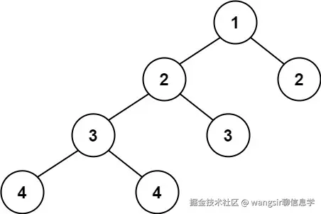 输入:root = [1,2,2,3,3,null,null,4,4]