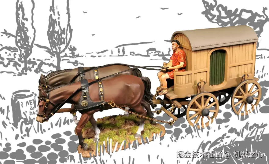 上面的动图展示了 20 秒钟的进化过程。每帧显示 5000 个「存活」的变体中的一个。同时,视频中叠加了所有 5000 个个体的腿尖轨迹,这些轨迹随时间推移合并成一个红、绿色光晕,最终收敛成一个单一的解决方案。作者最终选择的腿部连杆,是通过运行一个规模更大、时间更长的模拟程序简单选出的。命名结合了古拉丁语和希腊语单词:carpentum(一种有盖的马车,如下图)和 pod(代表脚或有腿的)。