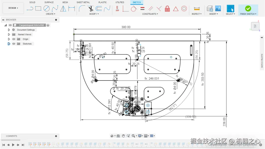 作者使用 Autodesk Fusion 360 设计了桌子的所有组件,这使他能够在同一个软件包中完成建模、测试、渲染和所有 CNC 的准备工作。能够在其行走周期的任何阶段从任何角度实际查看完全组装的模型,极大地方便了美学调整和确保所有间隙都恰到好处。