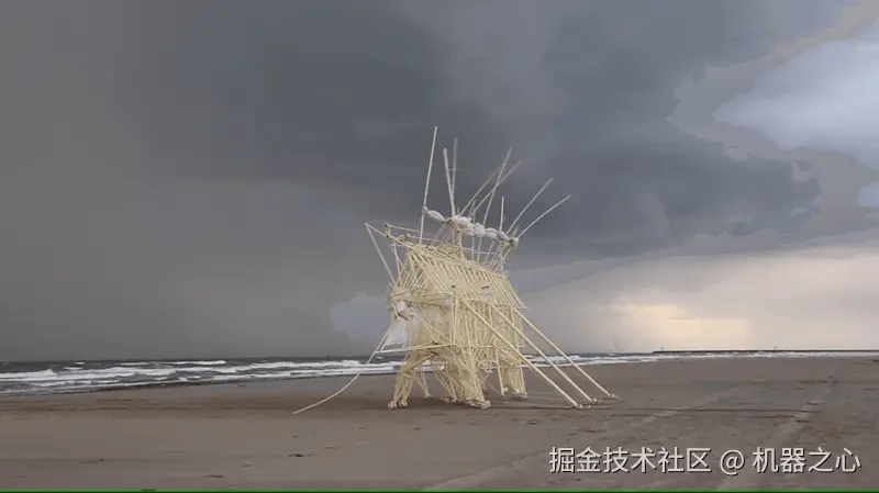 Strandbeests 是荷兰动感雕塑艺术家 Theo Jansen 发明的「风力仿生兽」,依靠机械原理和自然风力移动前行,结构巧妙之处在于合理的利用平衡性进行物理变量的转化,能源转化率非常高。