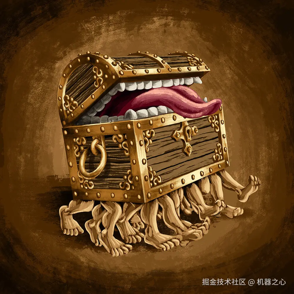 在一端的六条腿和另一端的六条腿之间,作者还留出了一个中空的「腹部」,用来放置电子设备、电机和电池。为了让它看起来不那么棱角分明,他把框架和腹部设计成弧形,就像一个倒置的百宝箱。这可能是有些人说它看起来像 Terry Pratchett《碟形世界》(Discworld)小说中的「行李箱」(如下图)的原因之一。