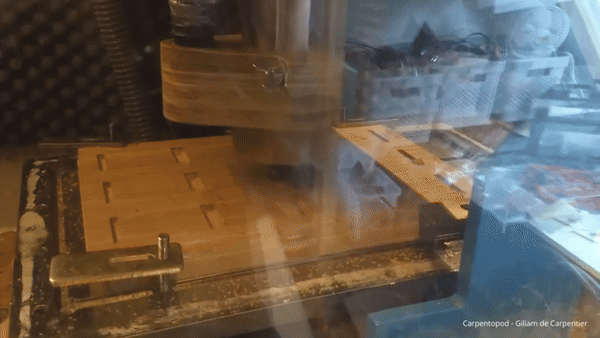 为了将 3D 设计实物化,作者尽可能多地使用 CNC。这不仅因为精确度的需要,也因为这样可以更容易地批量制造出十二个相同的木制部件。由于这只是一个兴趣项目而不是生产线,所以作者决定使用他便宜的三轴 CNC 路由器亲手制作所有东西。
