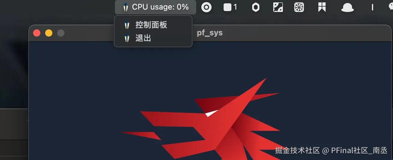 在 systray_run.go 中,托盘菜单设置了“控制面板”和“退出”选项。点击这些选项时,发送相应的指令给主程序。以下是主要的实现逻辑: