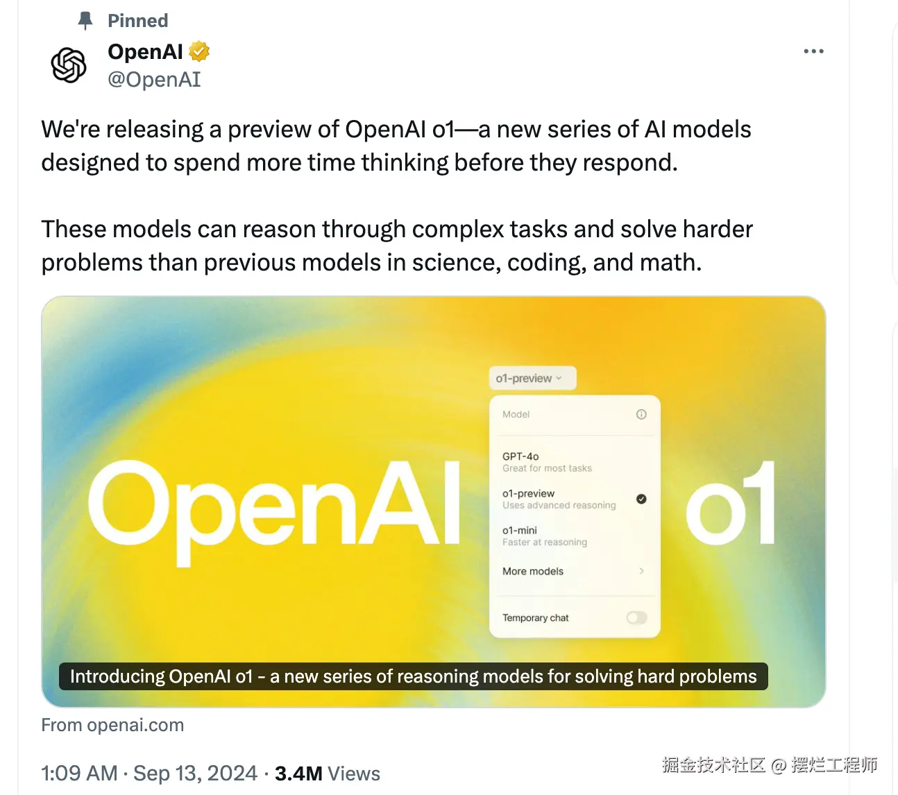 昨晚半夜,OpenAI正式发布了o1 预览版!这是一系列新的 AI 模型,旨在在做出响应之前花更多时间进行思考。