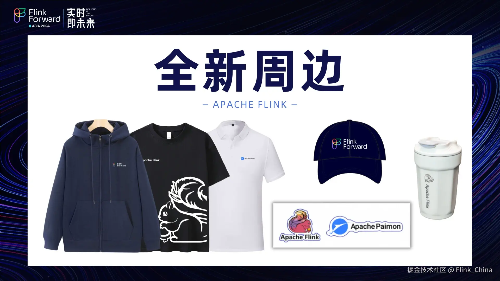 作为付费购票的嘉宾,您将获得2024特别版周边纪念帽和贴纸。同时在现场所有开发者朋友们都有机会参与抽奖,赢得 2024特别版纪念卫衣、Flink/Paimon 纪念杯、Paimon Polo 衫、Flink 卫衣 等多种好礼(具体礼品将以活动现场发放的为准)。我们期待与您一起分享这个特别的时刻,感谢您的支持和参与!