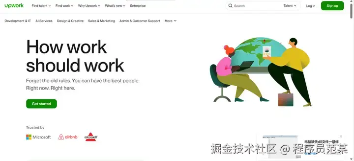 作为全球最大的自由职业者市场之一,upwork上涵盖了从软件开发到设计、广告、金融、法律等各个领域的远程工作。Upwork正在定义一种新型用工方式,通过严格的审核机制和准入原则,让需求方和开发者都能拥有较高的专业度和可信度。