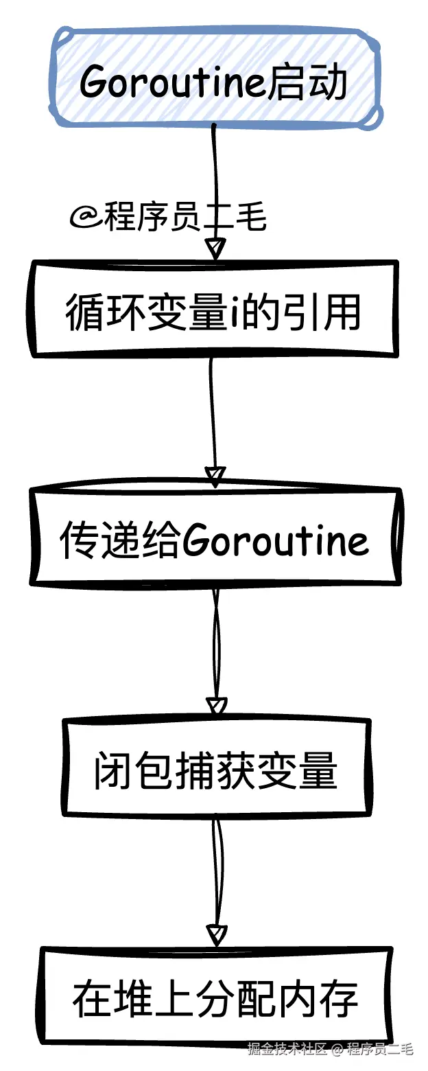 当for循环中启动goroutine时,Go会将循环变量的引用传递给goroutine。这就解释了为什么需要通过局部变量来避免闭包问题。
