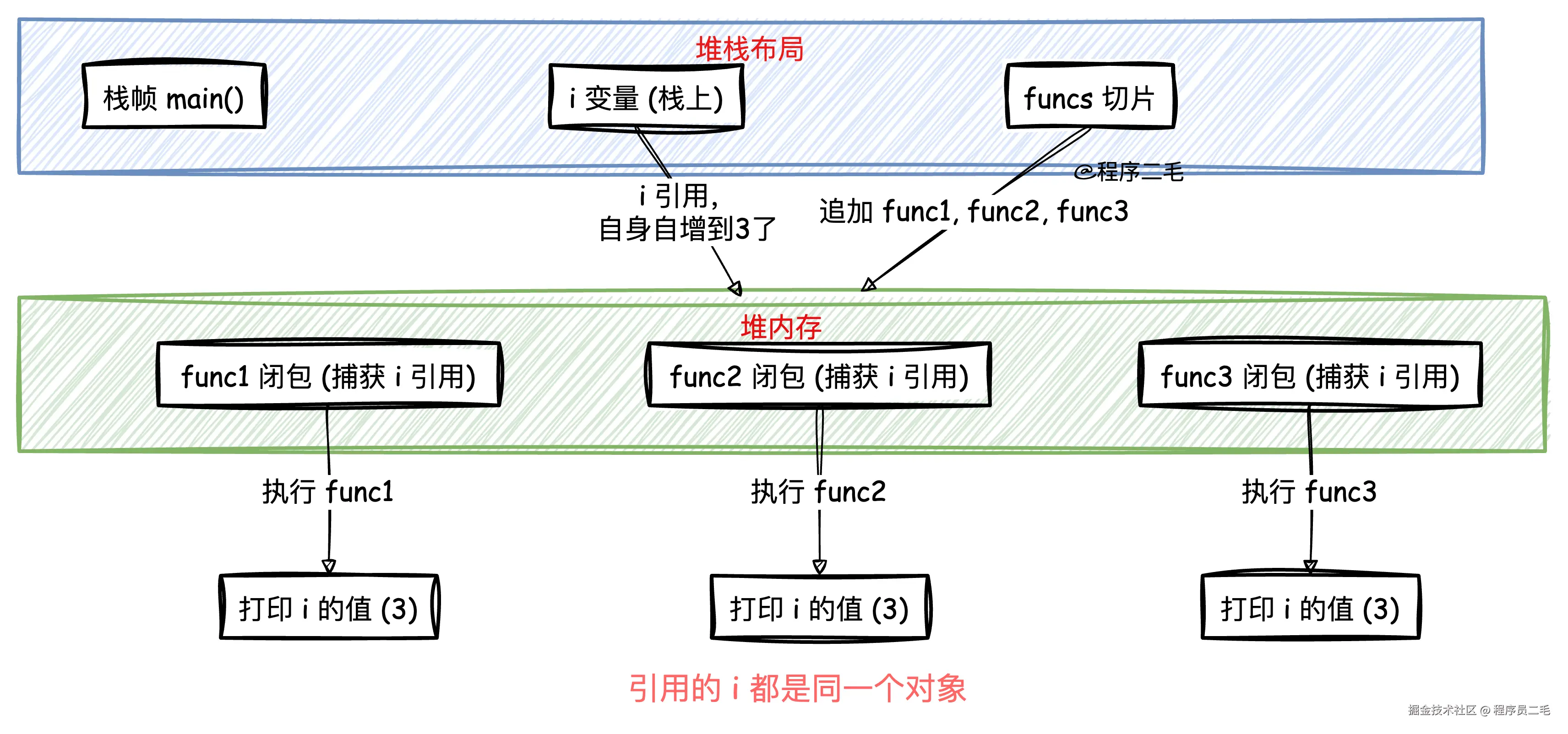 fmt.Println(i) // 也可以说是闭包,捕获了外部变量的引用,此时i却始终是一个对象