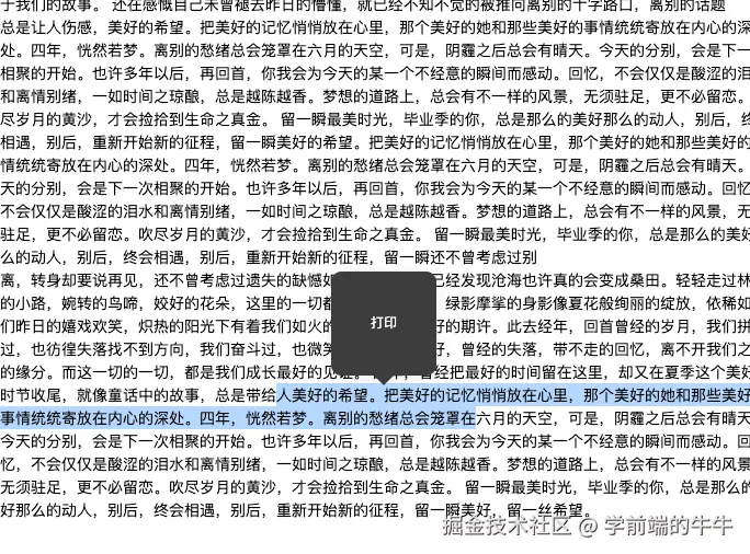 产品提了个选中文字弹出定制化菜单的需求(要覆盖浏览器默认的菜单),弹出菜单位置要合适,不覆盖选中文本,方便点击