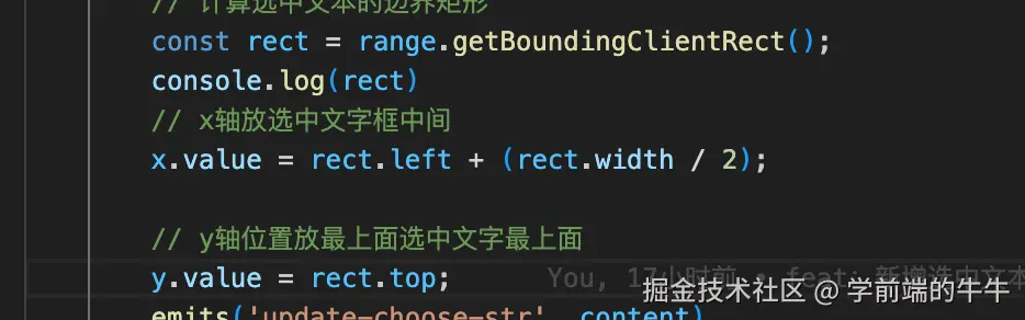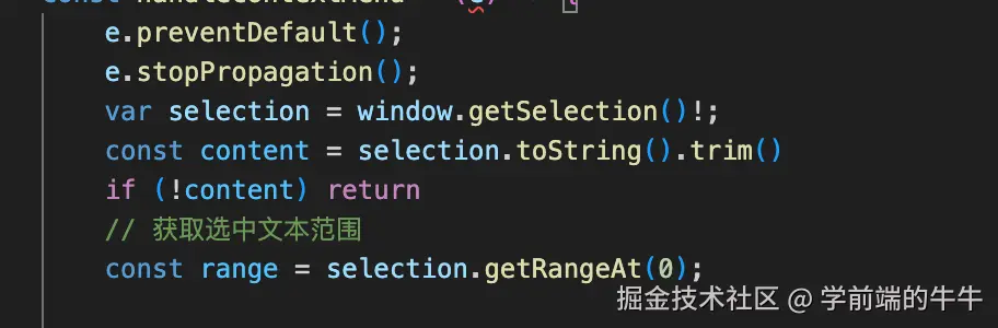 而这个范围信息 会作为range对象返回 (除在selection获取外平时可通过document.createRange创建或者new Range,后续如果有不太好处理的这种定位的 都可以去了解下range)