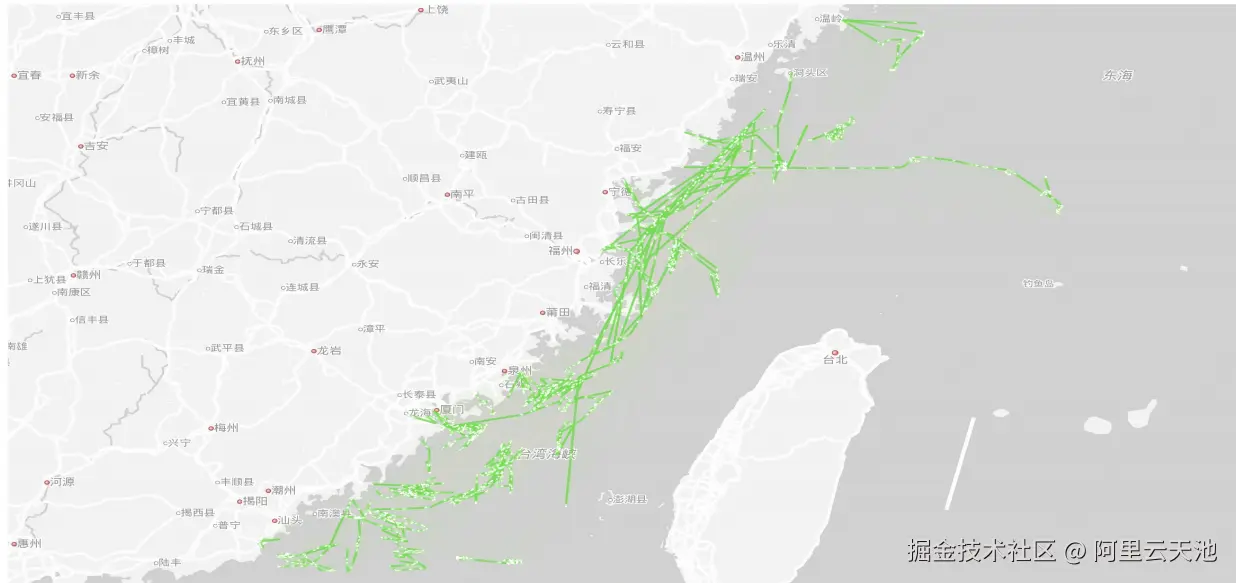 使用时序模型预测渔船未来30分钟所在的位置,并结合风控画像计算碰撞指数。综合考量船速、渔船密度、设备掉线时常、定位漂移率等指标。
