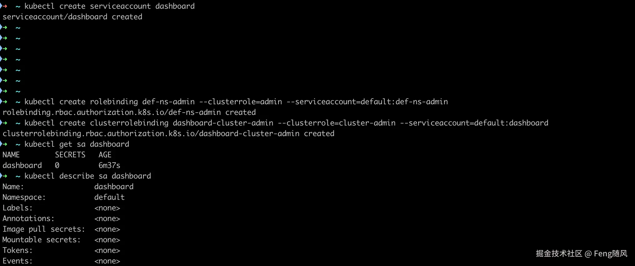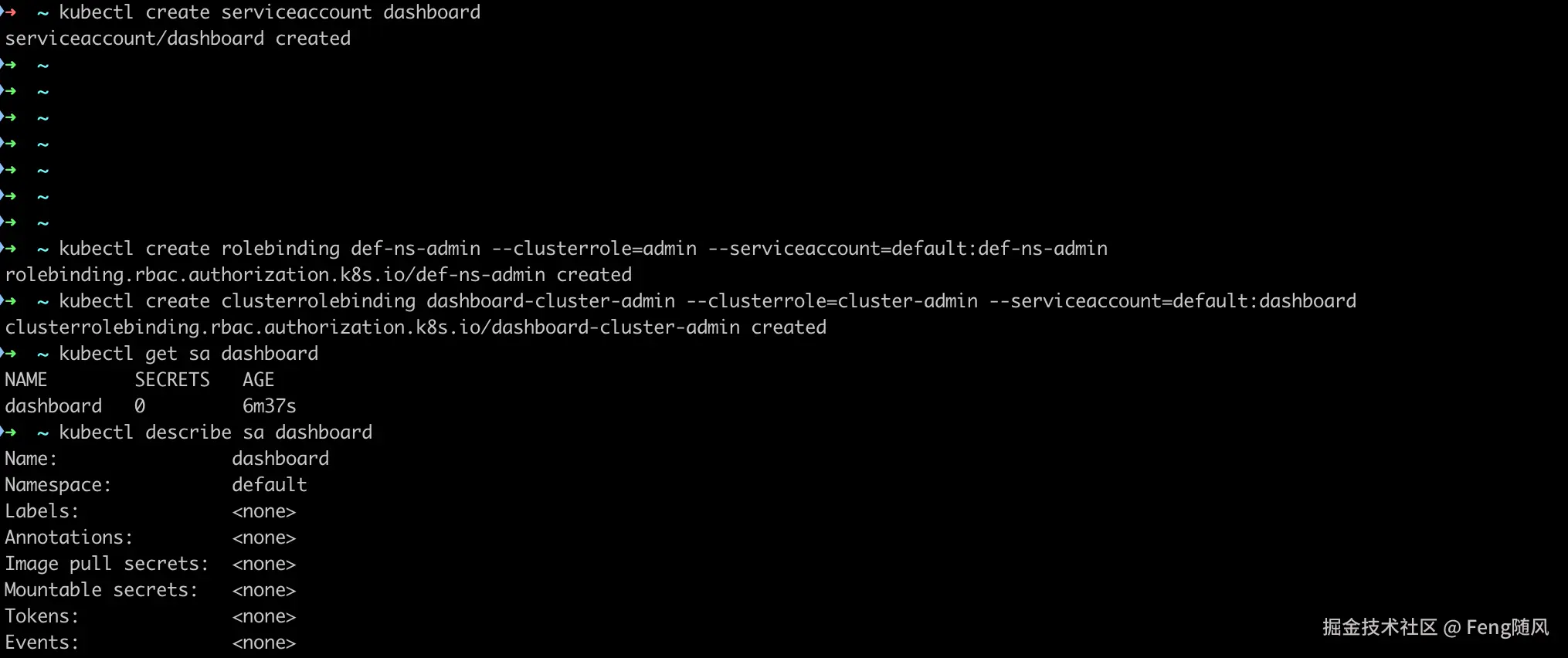 kubectl create serviceaccount dashboard -n kubernetes-dashboard