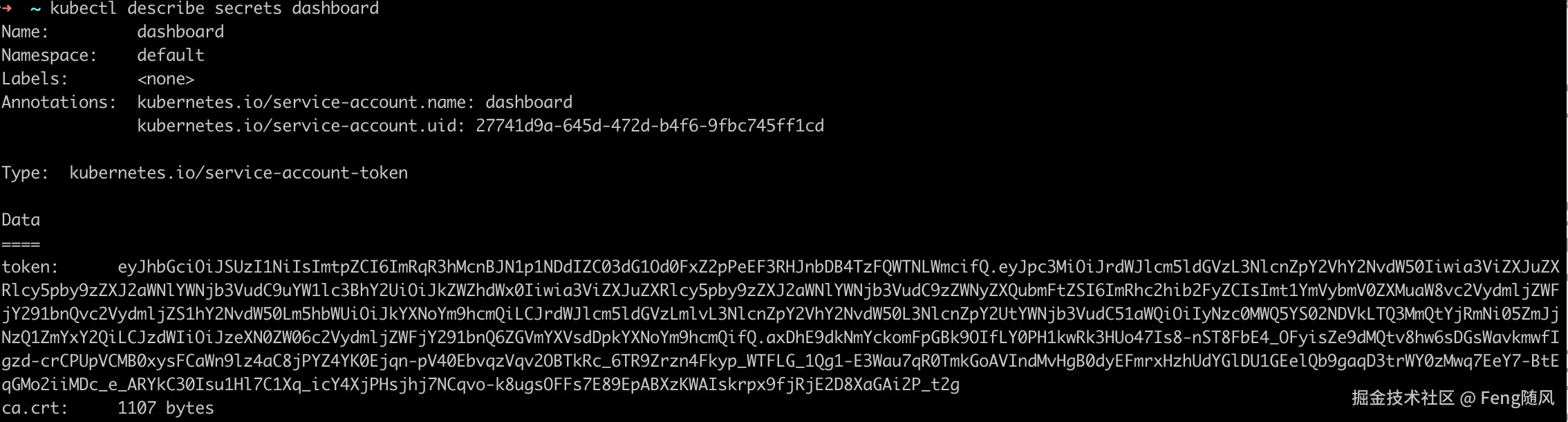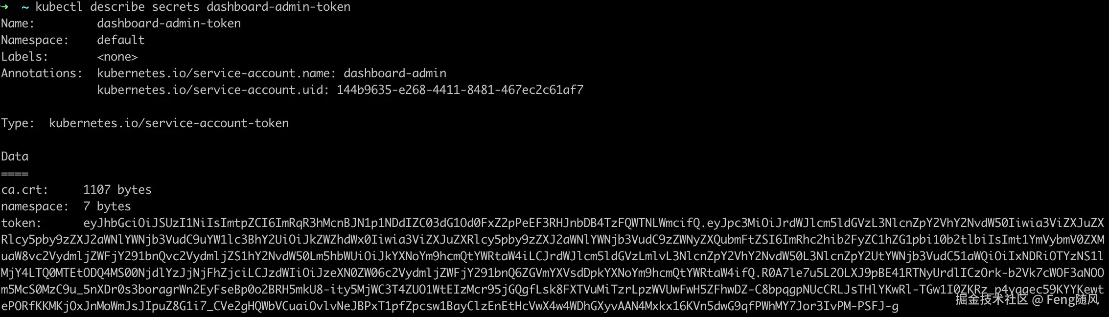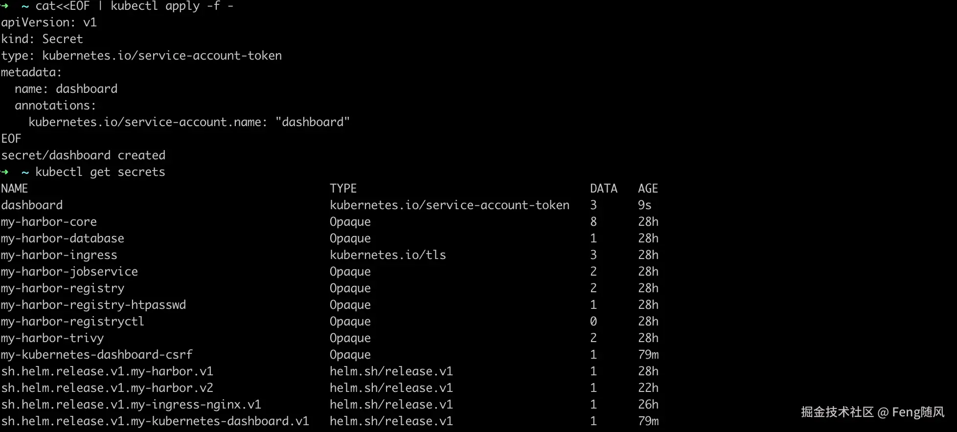 3. 创建secret给dashboard-admin(1.24版本后不会自动创建)