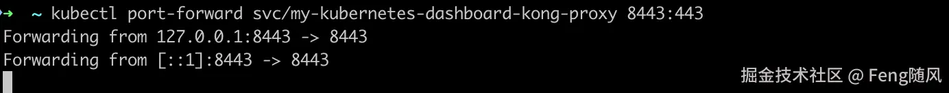 kubectl -n kubernetes-dashboard port-forward svc/kubernetes-dashboard-kong-proxy 8443:443 #访问Dashboard执行