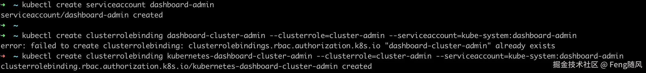 kubectl create clusterrolebinding dashboard-cluster-admin --clusterrole=cluster-admin --serviceaccount=kubernetes-dashboard:dashboard