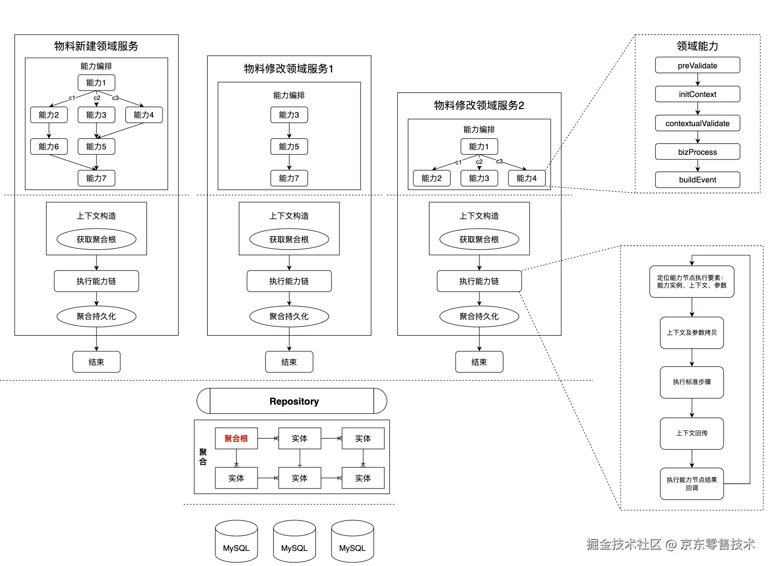 基于能力拆分与编排的代码架构,最显著的收益就是同一个能力可以在不同的领域服务中直接复用(点击放大查看)