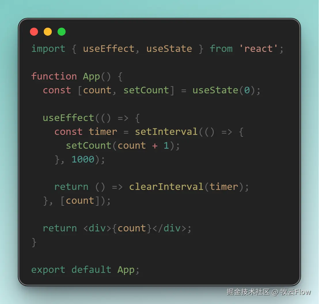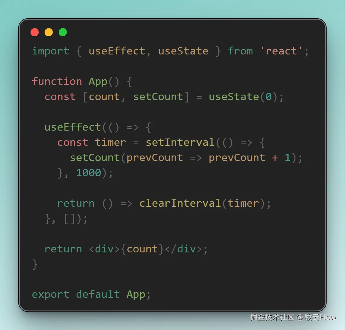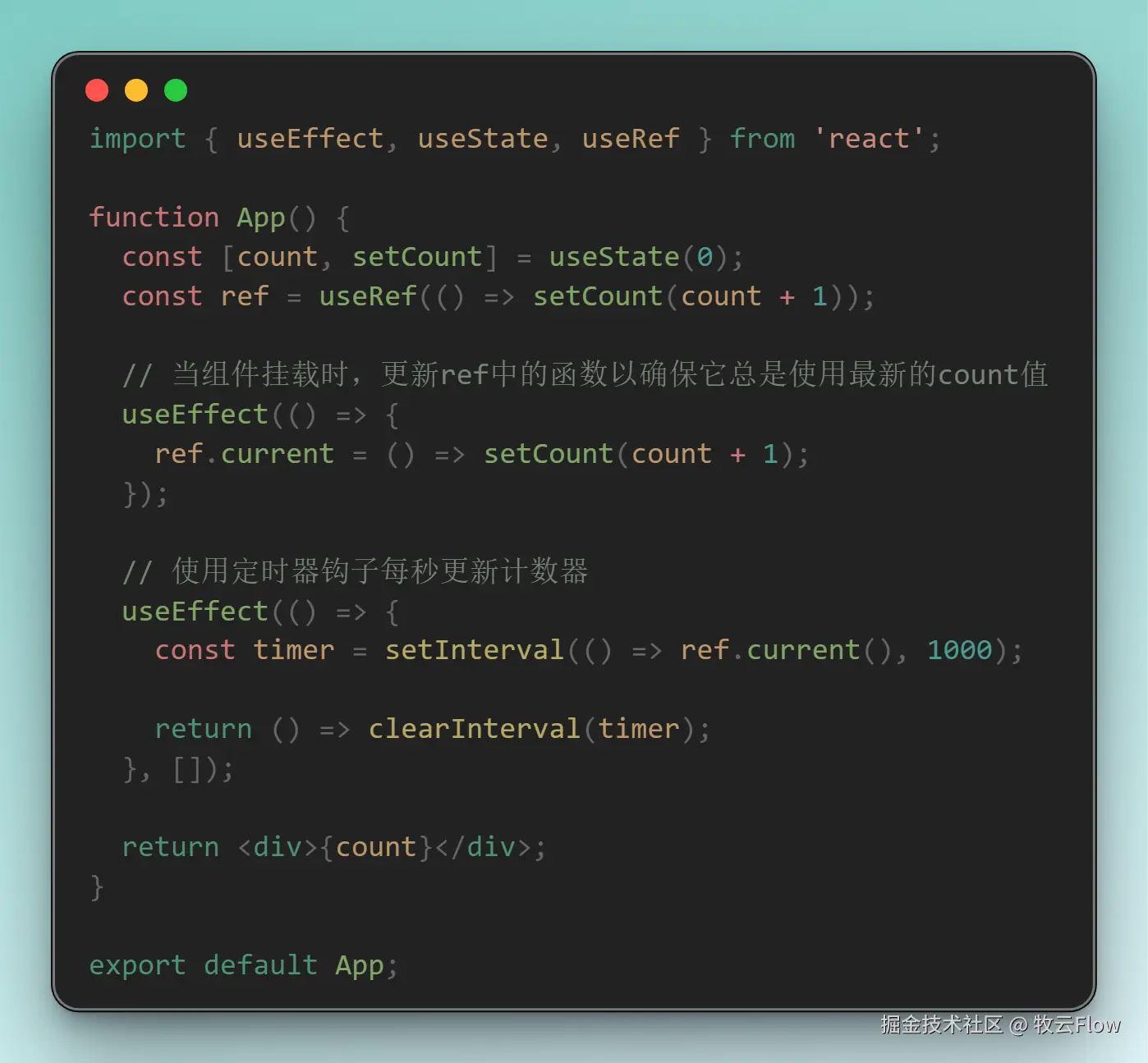 这种方法虽然能解决闭包陷阱,但在定时器的场景中并不合适,因为每次 count 变化都会重新启动定时器。
