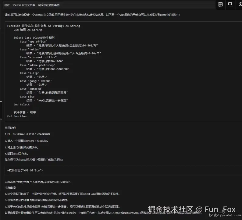 - 【HumanMessage】-1 设计一个 Excel 自定义函数,完成你在做的事情