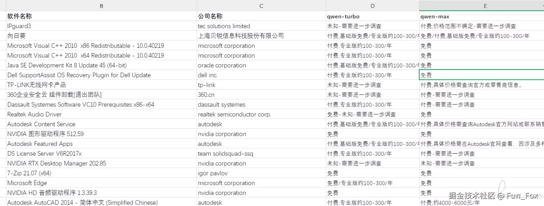 在对同一个软件查询付费情况和价格估计,整体看下准确度及信息完整性:claude-3.5 与 qwen-max 貌似在于博众之间,各有千秋。qwen-turbo 完败