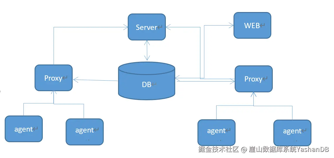 Web:监控管理页面,新增主机、监控项、触发器等(web直接写入db,从db直接获取数据)。