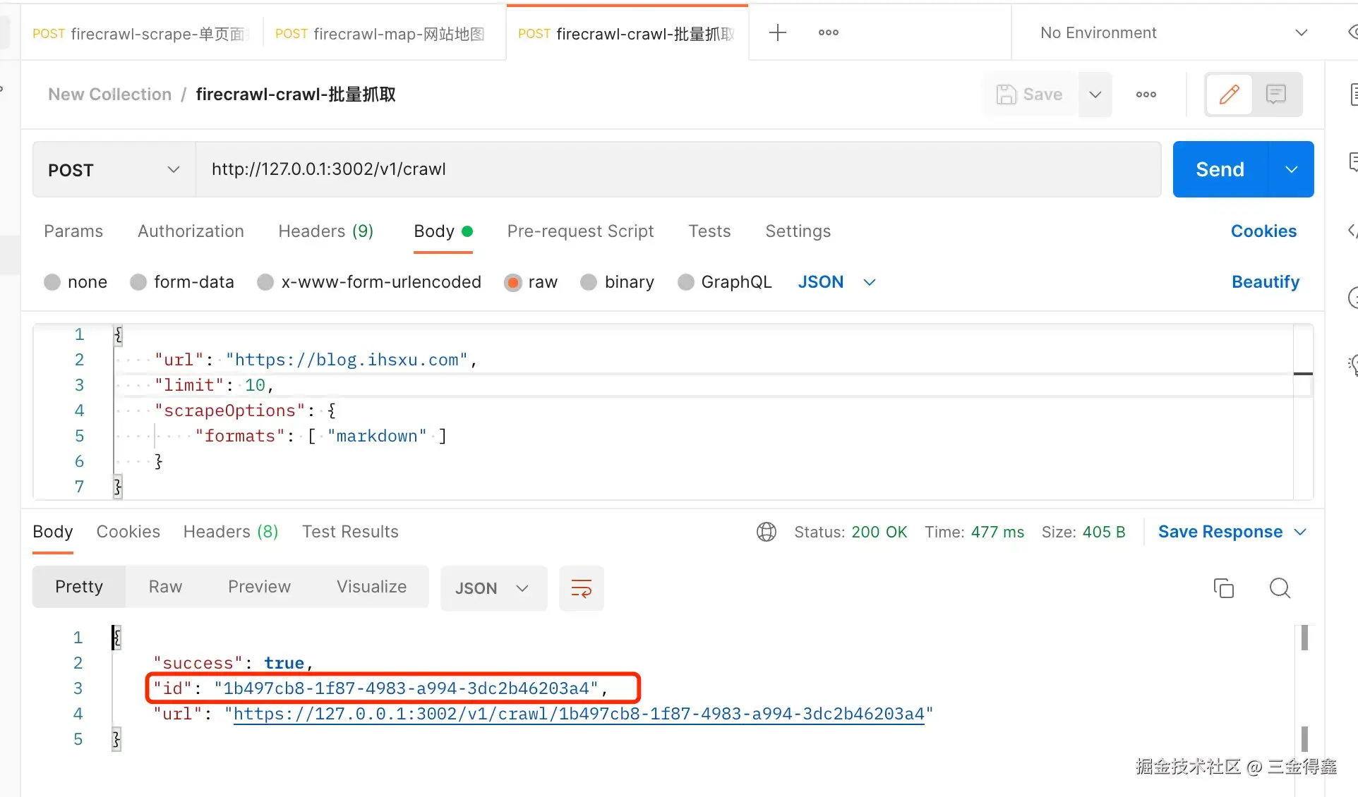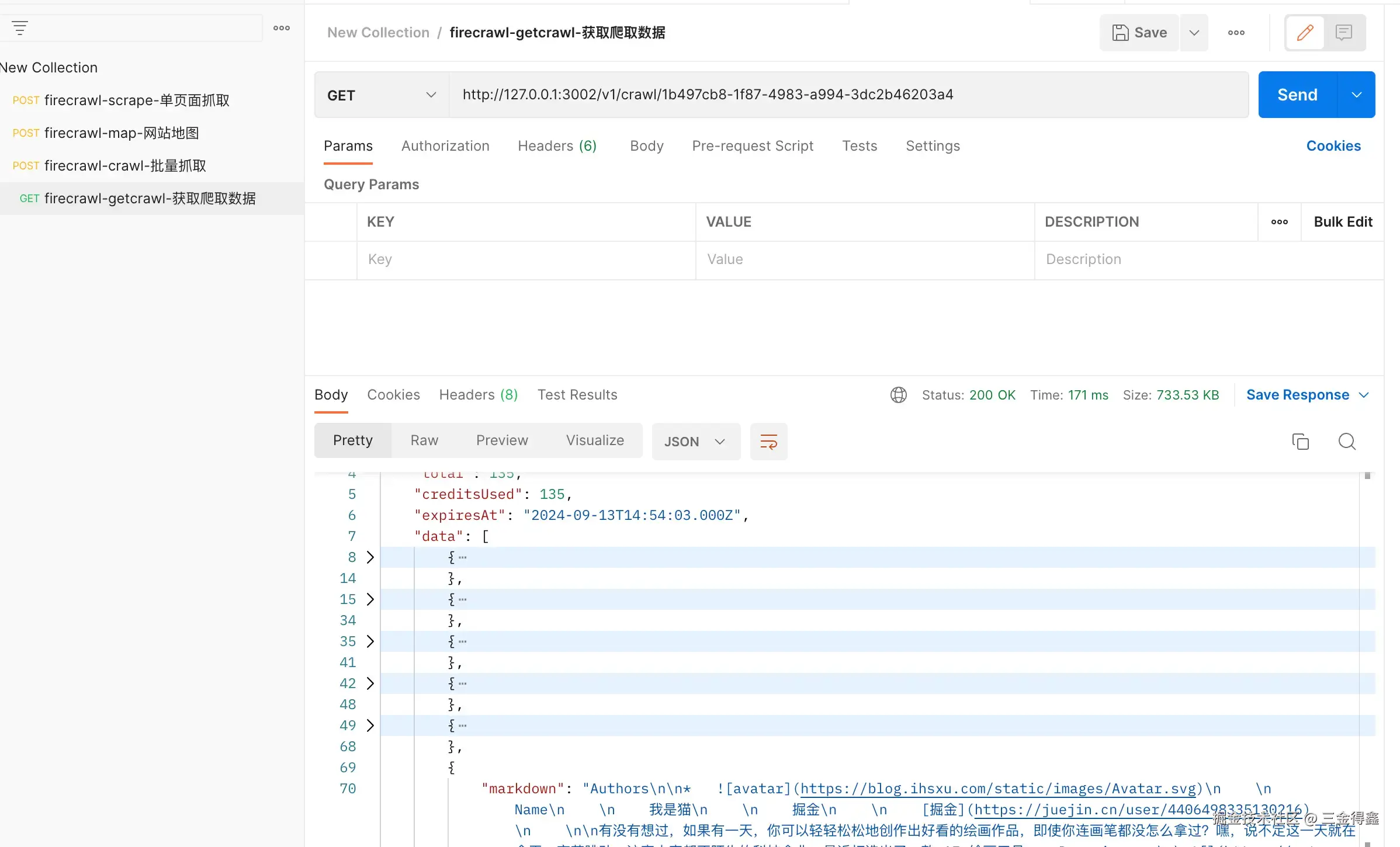 crawl API 会返回一个任务 ID,我们需要拿这个任务 ID 来查询最终的爬取结果:
