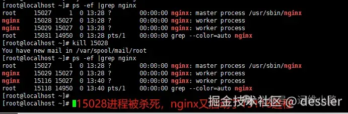 2.15028和15029进程编号是就是nginx的work进程,它的父进程就是nginx的master进程,反之他们就是15027的子进程。