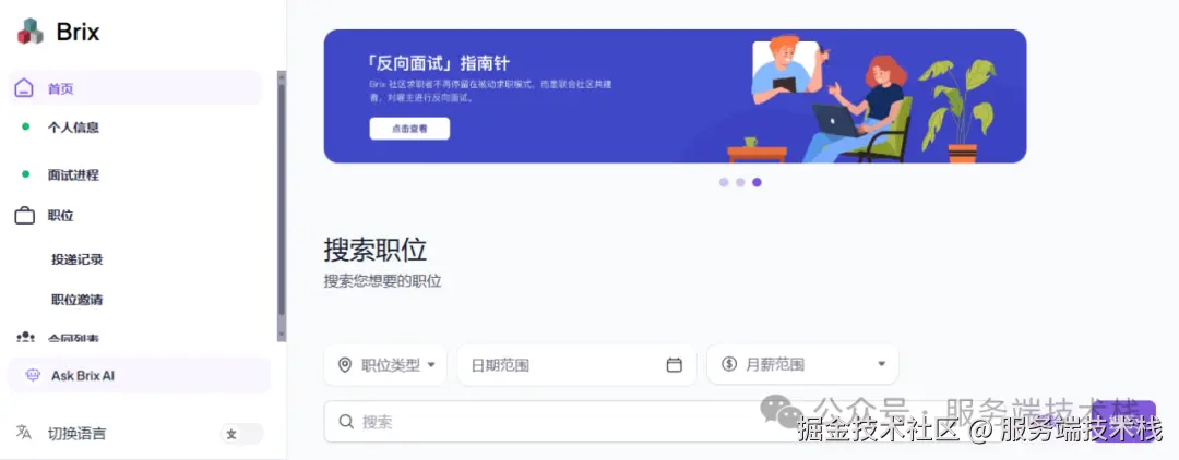 Brix是一个连接远程开发者与全球雇主的工作平台,更专注于帮助技术人员``提升面试和工作准备。平台内的所有全职岗位都经过严格筛选并享有正规的五险一金及其所在地的福利待遇。同时Brix也为用户提供了专属AI面试助手,帮助你快速找到适合的远程工作机会。