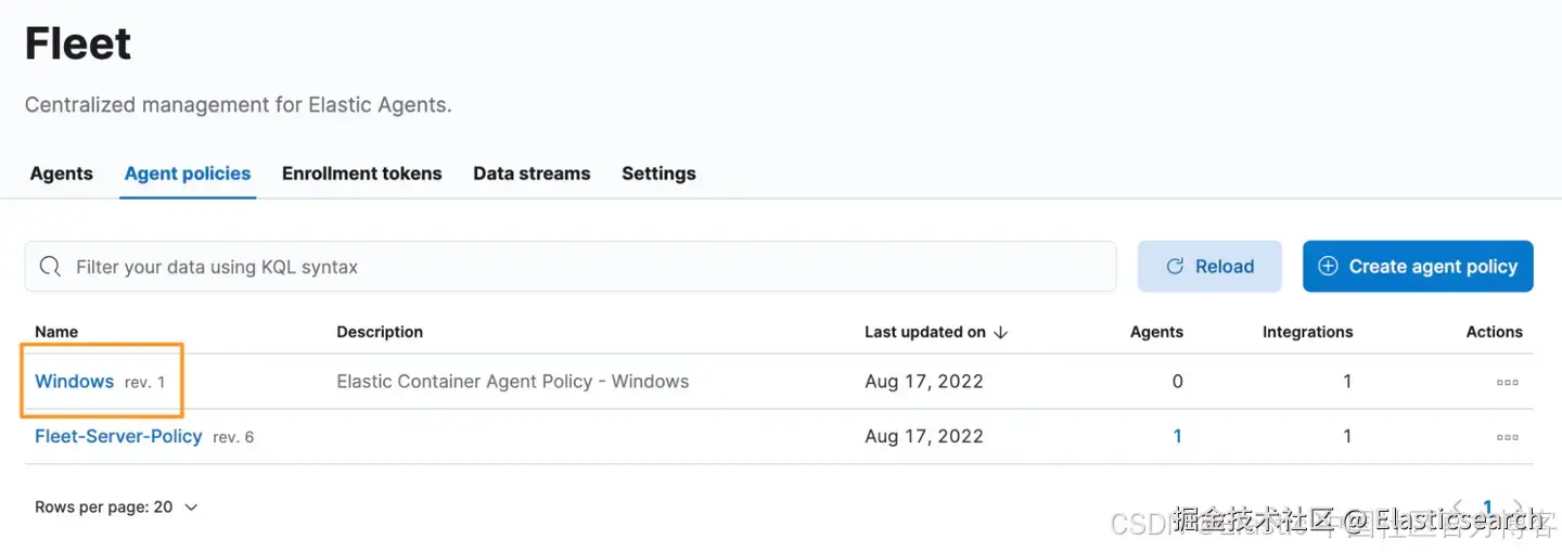 现在我们已经启动并运行了整个 Elastic Stack,我们可以制定 Fleet 策略了。Fleet 是 Elastic Agent 的子程序(它是在运行 shell 脚本中的 start 选项时构建的),它使你能够管理其他 Elastic Agent、策略和集成。