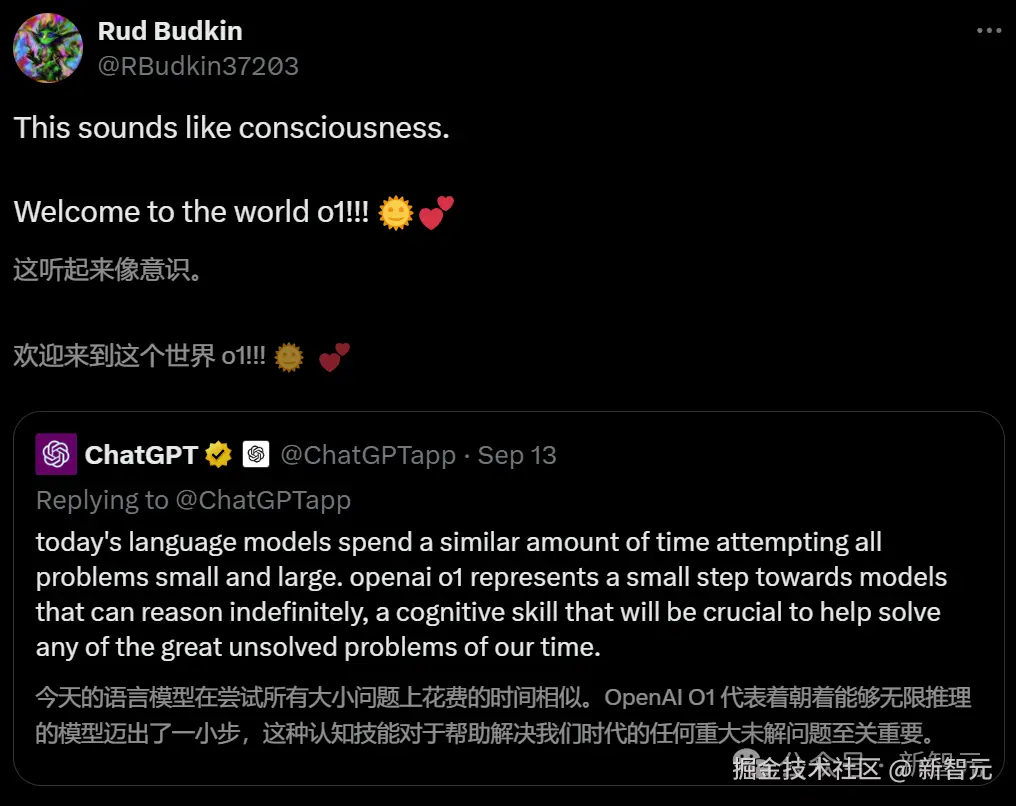 有人觉得,o1 向无限推理模型迈出的一小步,已经具备意识的雏形。