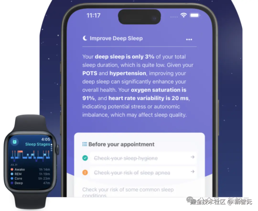 事实上,2017 年开始,苹果就在做这件事了:他们开展了第一项使用 Apple Watch 和深度神经网络检测睡眠呼吸暂停的研究。