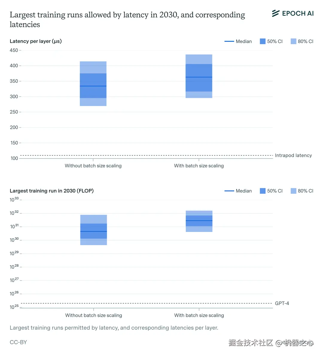 报告提到了可能制约扩展的四个关键因素:电源可用性、芯片制造能力、数据稀缺性和「延迟墙」(人工智能训练计算中不可避免的延迟所造成的基本速度限制)。
